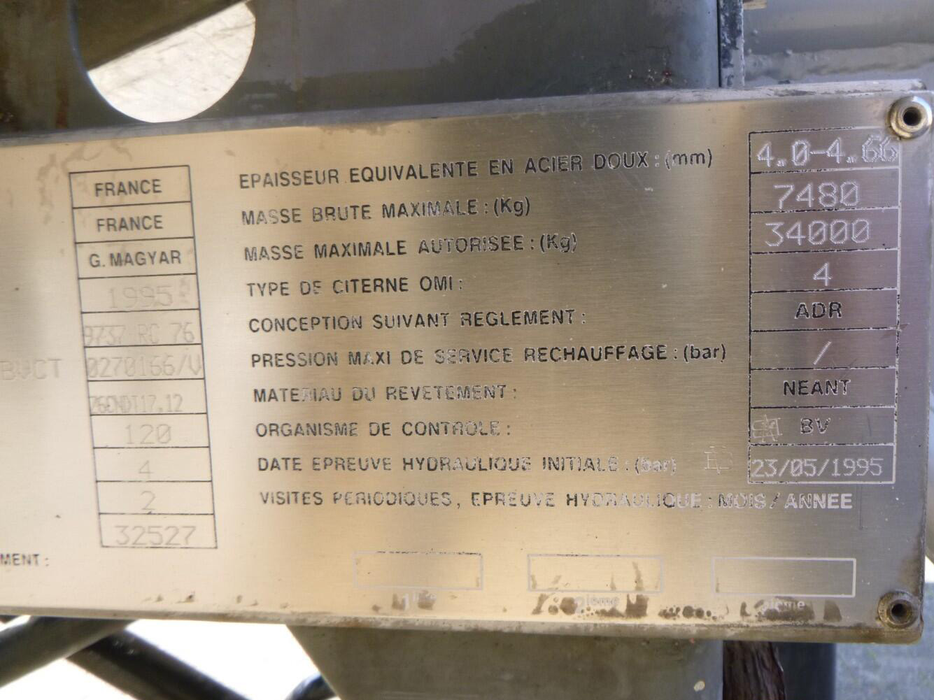 1995 Magyar Chemical tank inox 32.5 m3 / 1 comp