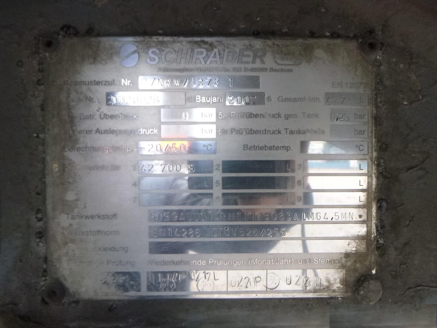 2002 Schrader Fuel tank alu 42.7 m3 / 1 comp