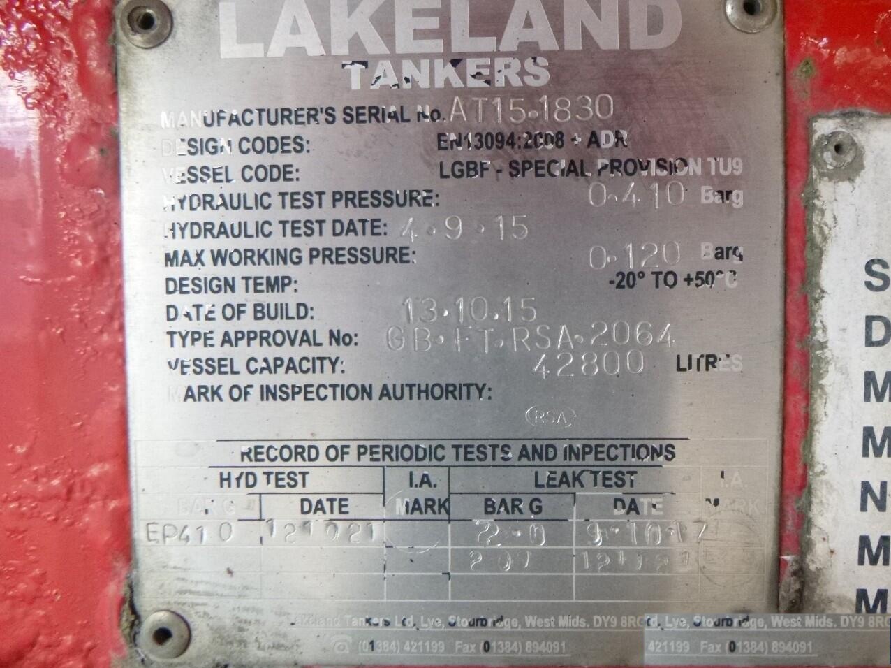 2015 Lakeland Fuel tank alu 42.8 m3 / 6 comp + pump