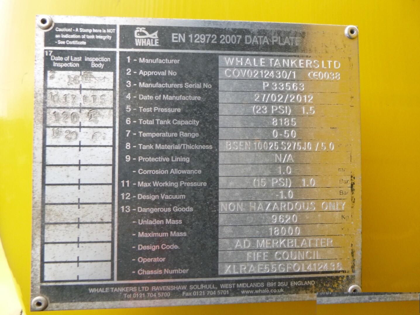 LF 55.220 4X2 Whale vacuum tank 8.1 m3